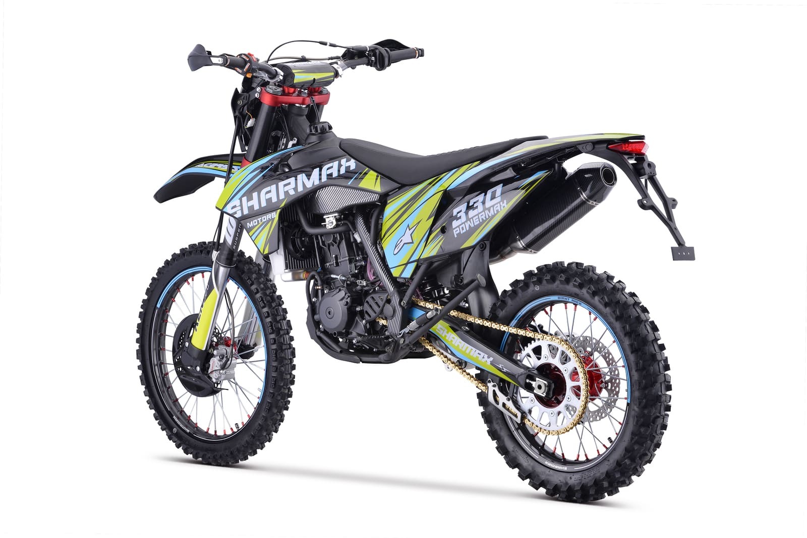 Мотоцикл Sharmax Powermax 330 оснащён двигателем объёмом 249 кубических сантиметров и мощностью 29 лошадиных сил, что позволяет ему развивать высокую скорость уже со старта благодаря балансу двигателя и качеству топливной смеси, подающейся через карбюратор Nibbi.
