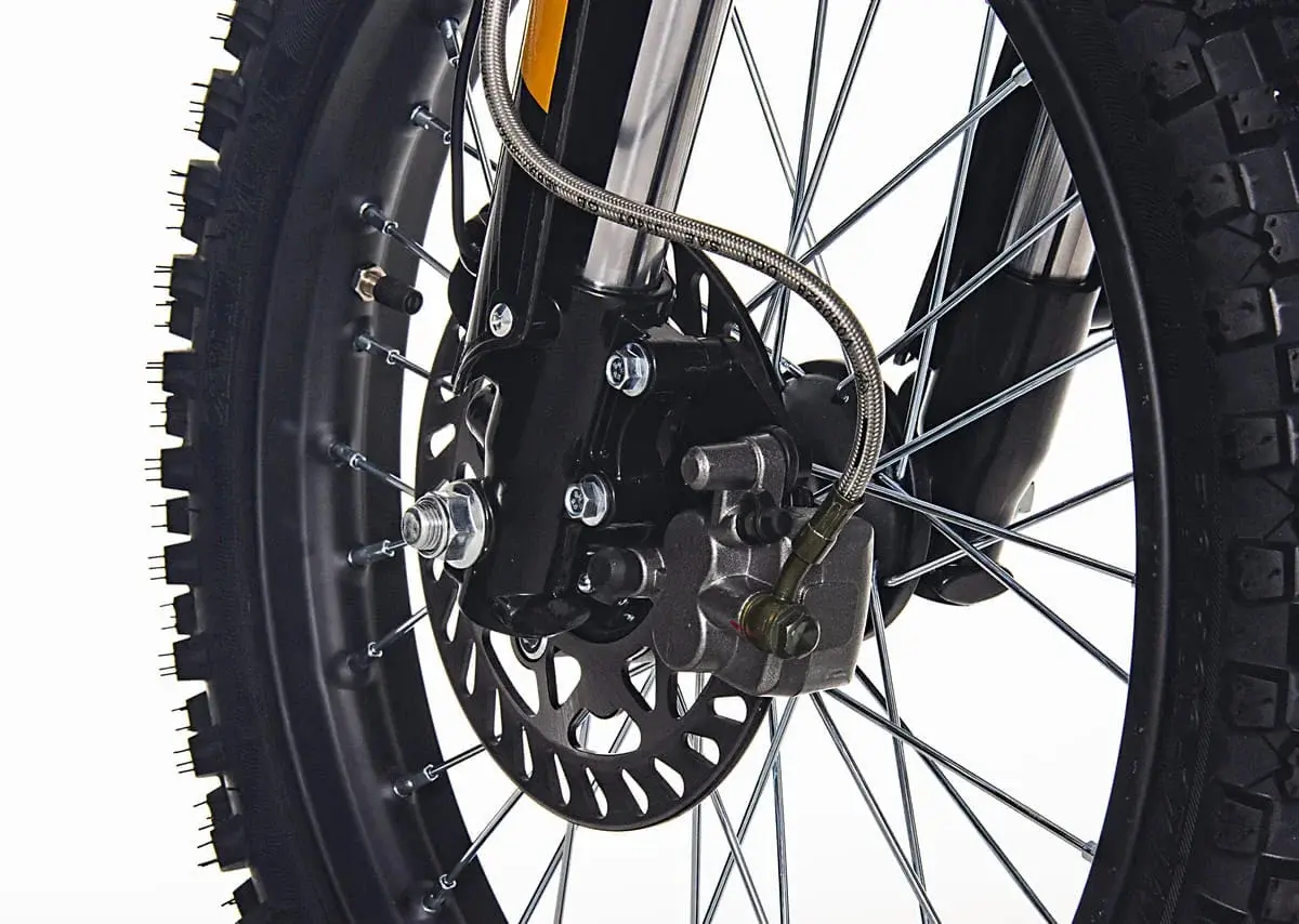 Рама усиленного питбайка выполнена из высококачественного хромомолибденового сплава, что делает её одновременно прочной и легковесной.