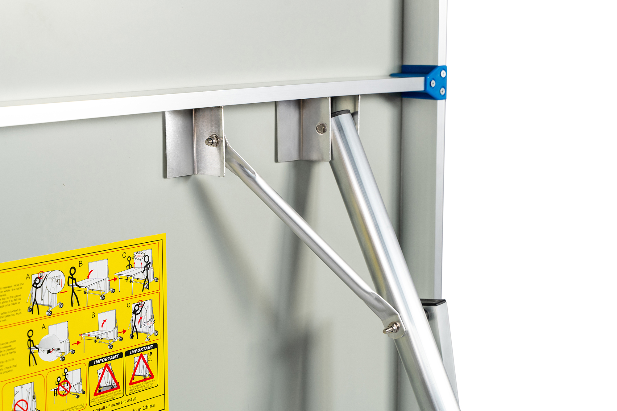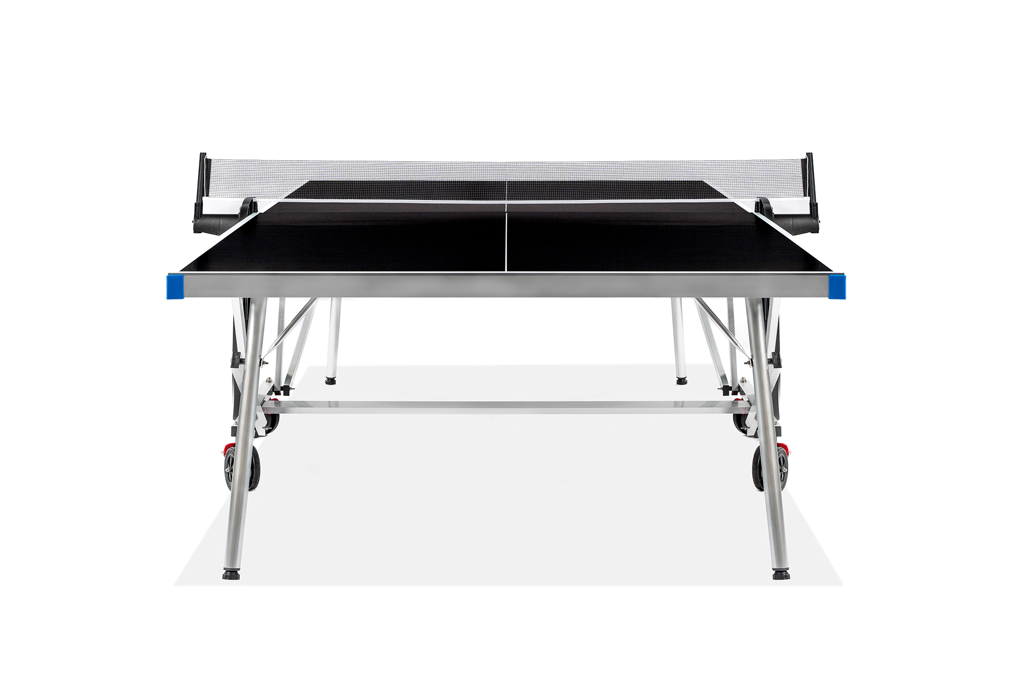 Регулируемые опоры позволяют установить стол на любой поверхности, а возможность сложить одну половину – играть в одиночку, тренируясь без партнёра.